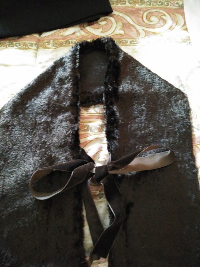 He comprado como un metro y medio de cinta de terciopelo. y cosida a los lados, con puntadas muy pequeñitas, para que no se vean.