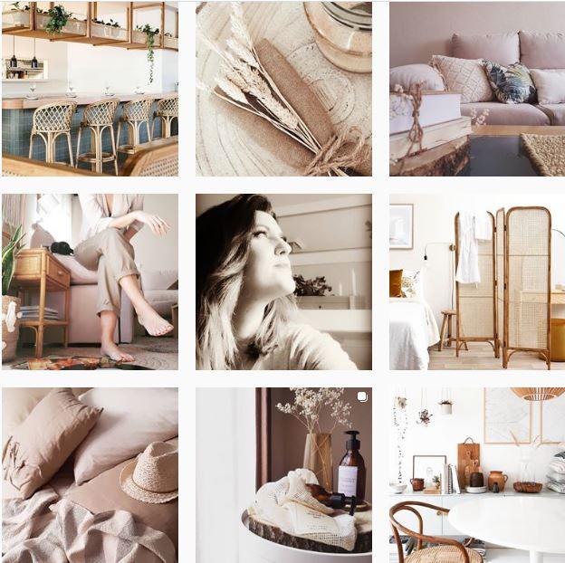 Nos encantan los tonos neutros de sus imágenes, algunas son de inspiración y otras de su casa. Es una maestra eligiendo cojines y echad un vistazo a su espacio de trabajo, así es fácil ser productiva.