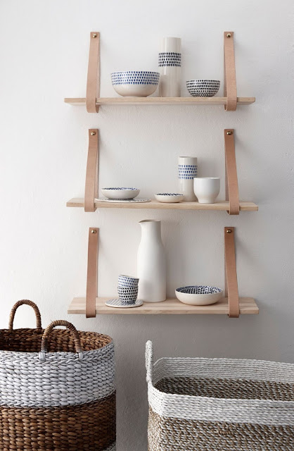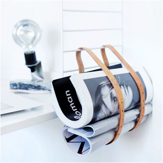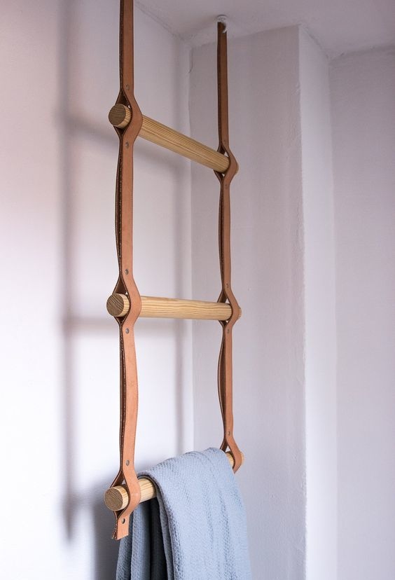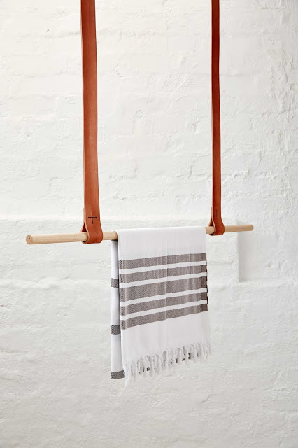 Correas que se convierten en el sustento imprescindible de estanterías, toalleros, espejos, macetas y relojes...