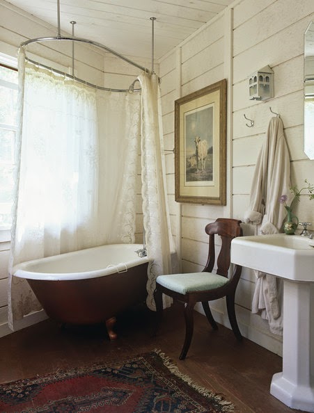 Una de nosotras odia las mamparas...., esas de los baños, las que protegen de las salpicaduras de la ducha. Y es que la de su cuarto de baño (ese que lo mismo es para féminas que para varones porque su casa no da para más) tiene una de tres cuerpos que siempre se engancha al abrir y cerrar... Se descuelga, saliéndose de su riel (es corredera, se entiende), su dueña la coloca y se vuelve a descolgar... Un verdadero tostón. Eso no quiere decir que las mamparas no sean una buena solución para los tsunamis que pueden llegar a provocar un buen remojón. Pero hay que reconocer que, con gusto, unas buenas cortinas decoran de manera mucho más tradicional e incluso retro, un bonito cuarto de aseo.