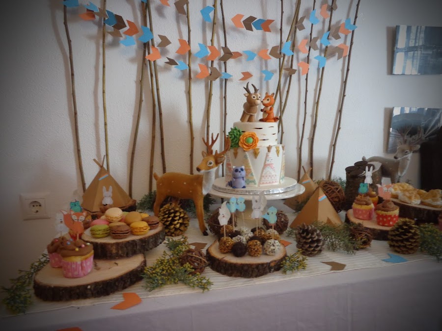 ¡Hoy toca entrada doble! Como ya os comenté hace un tiempo por las redes sociales, la temática que me gustó desde un principio para celebrar el primer cumple de mi peque, fue animalitos del bosque, así que lo primero que busqué fueron varios modelos de tartas y al final elegí una muy molona que después tuvimos que hacer algunos cambios para adaptarla al número de porciones.
