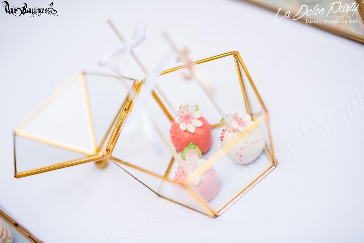 Los dulces no pudieron ser más bonitos, con un toque delicado, con un acabado perfecto y con un diseño que nos enamoró. Y así quedaron con la bonita decoración que utilizamos para la mesa de dulces. Disfrutad todos los detalles…