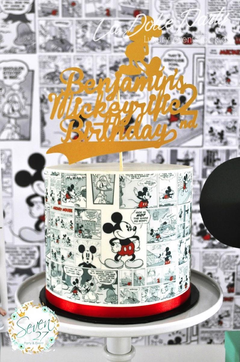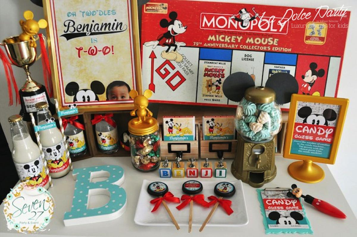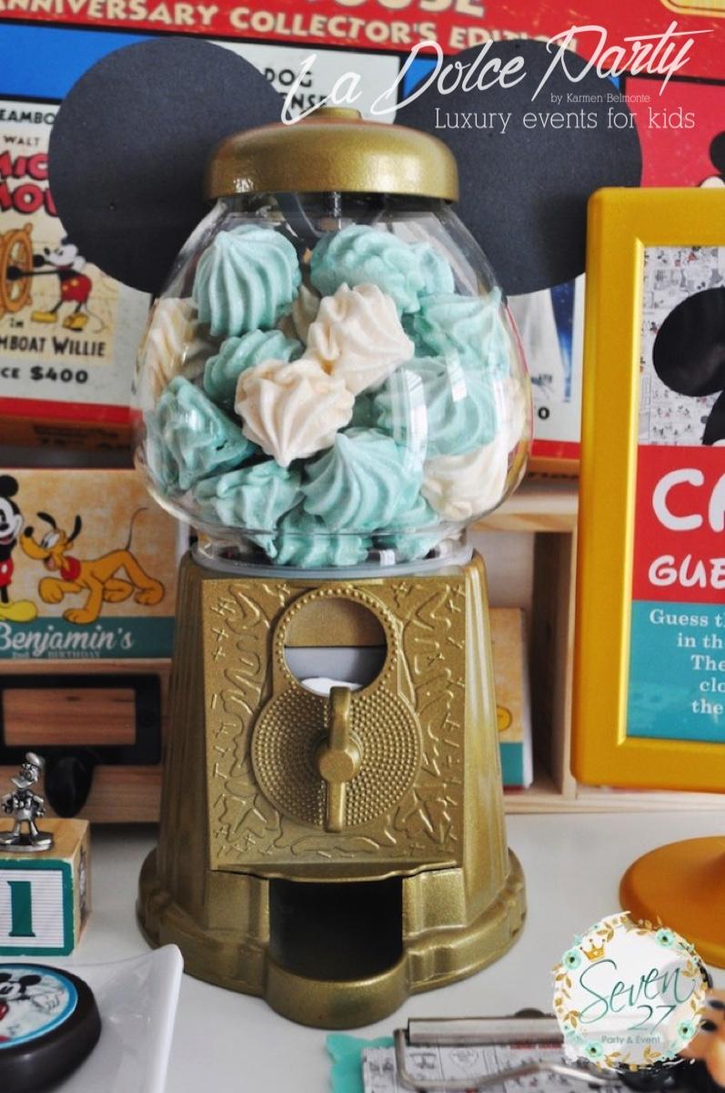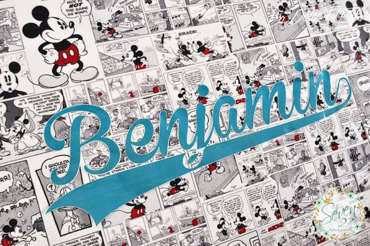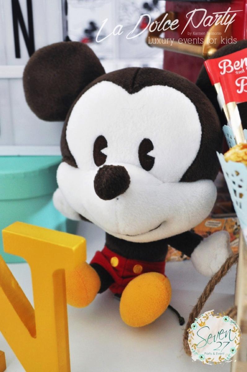 Esta inspiración para una fiesta de Mickey Mouse me ha gustado por el carácter vintage que han querido darle y que han conseguido totalmente!, por la paleta monocromática de colores con el rojo y el turquesa destacando sobre el negro y blanco, por el rollo cómic de toda la fiesta … y es que desde que se tiene un hijo, tu vida se convierte en un verdadero cómic!