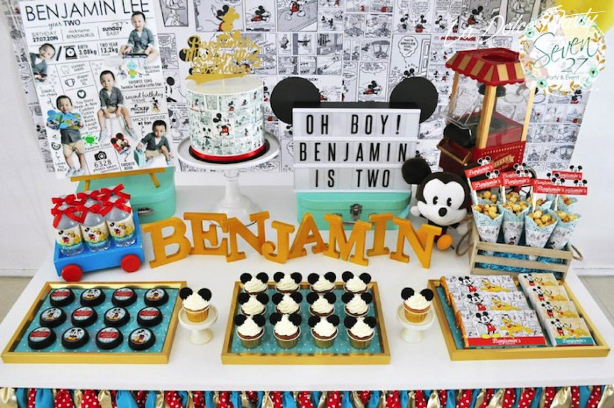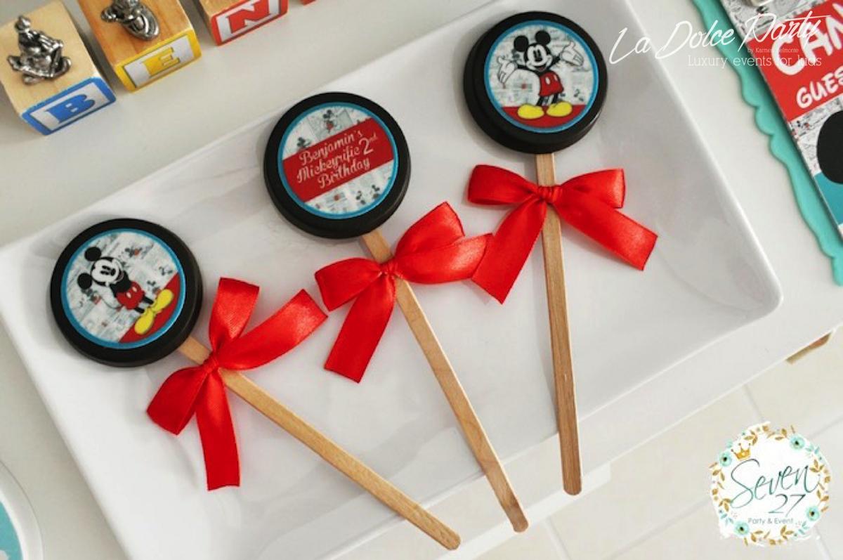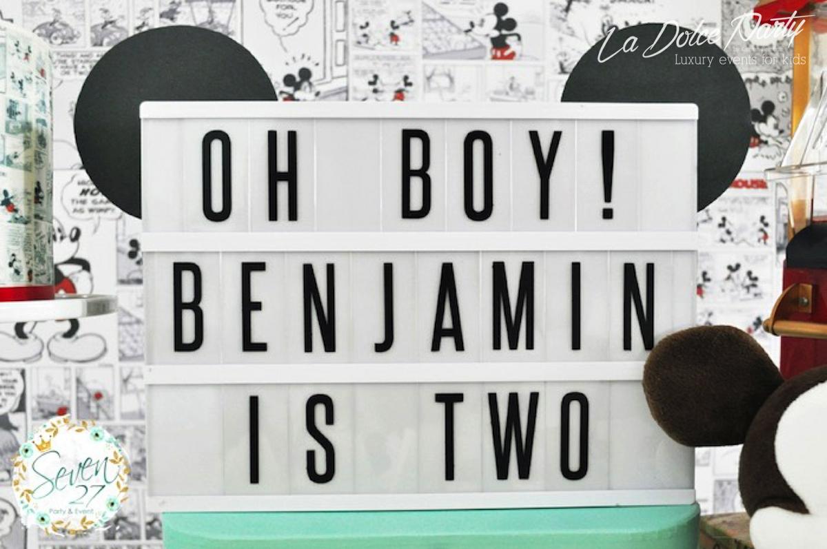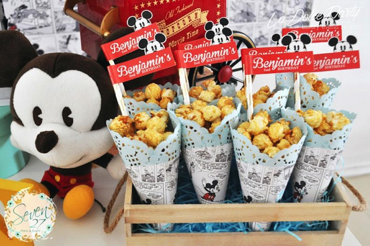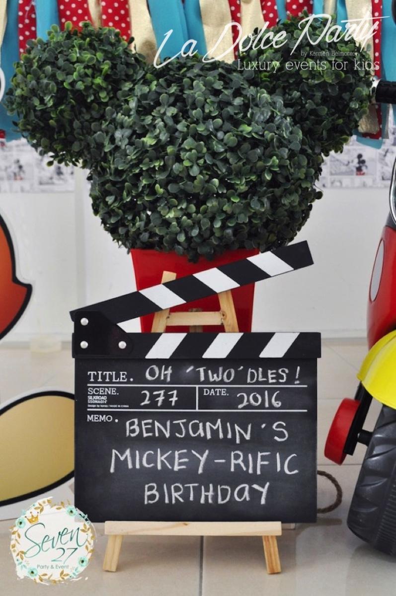 Esta inspiración para una fiesta de Mickey Mouse me ha gustado por el carácter vintage que han querido darle y que han conseguido totalmente!, por la paleta monocromática de colores con el rojo y el turquesa destacando sobre el negro y blanco, por el rollo cómic de toda la fiesta … y es que desde que se tiene un hijo, tu vida se convierte en un verdadero cómic!
