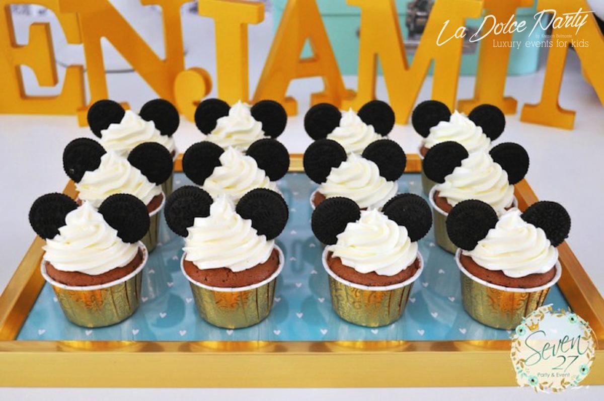 Y ya en la mesa de dulces, nos encontramos carritos personalizados con chuches, cupcakes, chocolatinas y más cositas cuidando hasta el último detalle