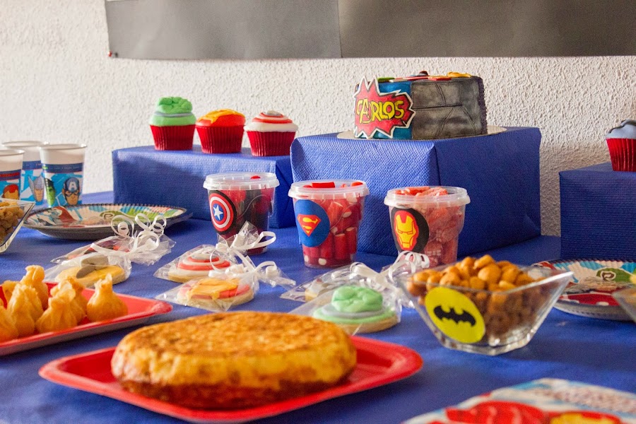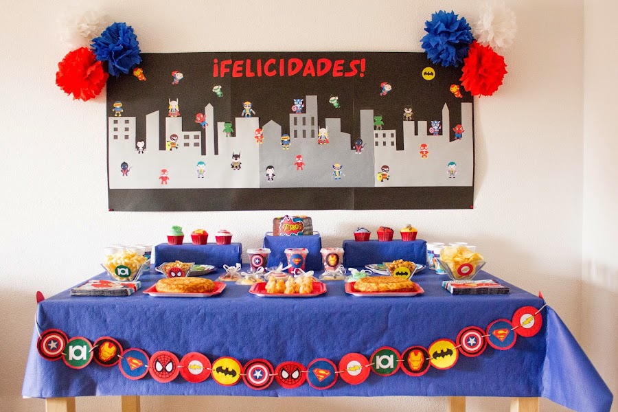 Es la primera vez que hago una decoración cumpleañera más elaborada y he contado con ayudantes de lujo. El tema elegido eran los superhéroes ya que el homenajeado es un fanático total.