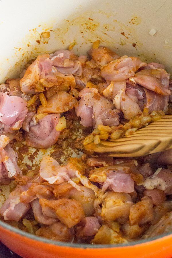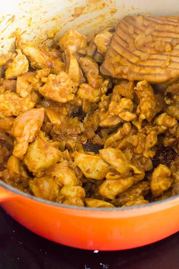 Lo sellamos junto con la cebolla y el curry durante unos 5 minutos.