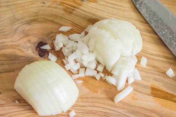 Lo primero que tenemos que hacer es picar la cebolla en cuadraditos pequeños.