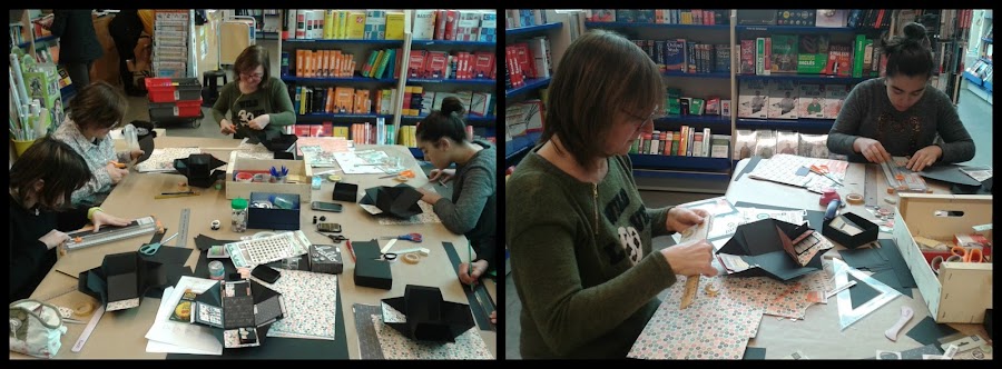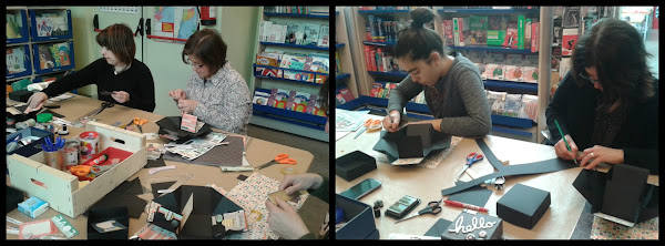 Empezamos a las 10h, y no nos dimos ni cuenta que ya eran las 13.30h!!! Pasó volando, y a las 14h terminaba así que, apurando al máximo. Fue divertido crear una caja de la "nada", llena de rincones secretos, ideal para cualquier tipo de regalo u ocasión.