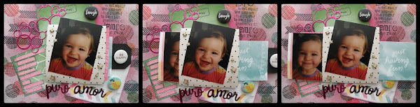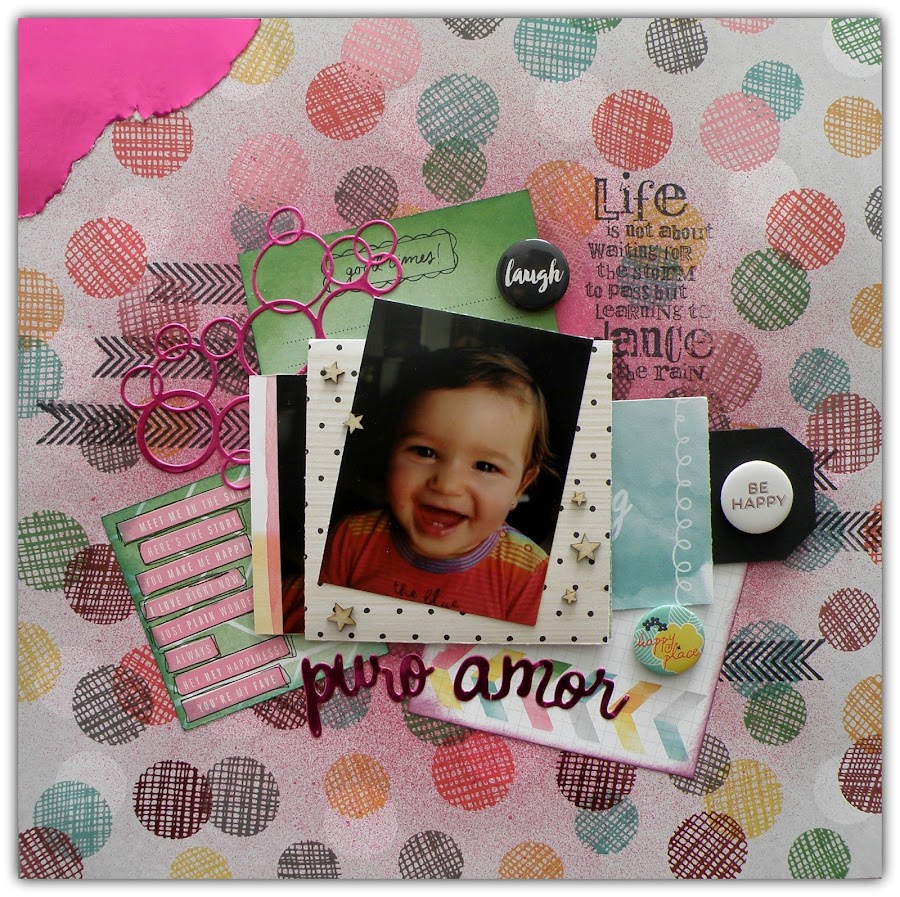Pues hoy cuatro fotos más de otro de los cursos de la semana pasada. El jueves día 17 nos reunimos por la tarde e hicimo un layout. Con un papel chulísimo de Amy Tangerine, hicimos un layout sorpresa.