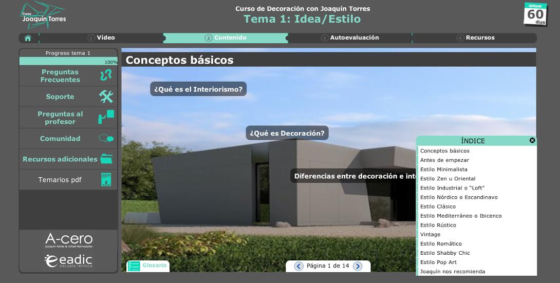 Recientemente la Escuela Técnica EADIC y el Estudio de Arquitectura A-CERO han puesto en marcha un proyecto educacional, virtual, interactivo y especializado en DECORACIÓN Y DISEÑO DE INTERIORES de la mano de Joaquín Torrres.