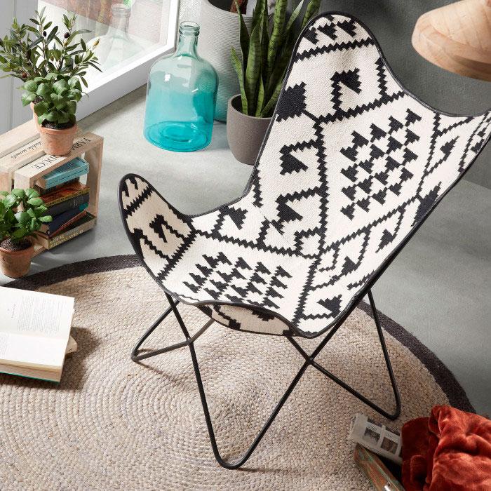 Una butaca Butterfly queda siempre bien, en cualquier rincón. Aprovecha los precios del Black Friday para hacerte con una, esta además tiene un estampado en kilim de algodón que la hace aún más especial.