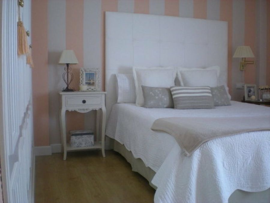 Pintar una pared a rayas en el dormitorio es una excelente idea, como nos demuestra Mondita. Por un lado vamos a poder combinar dos colores y enriquecer la decoración. Por otro lado, nos va a dejar jugar opticamente con el espacio haciendo que los techos parezcan más altos o la habitación más ancha.