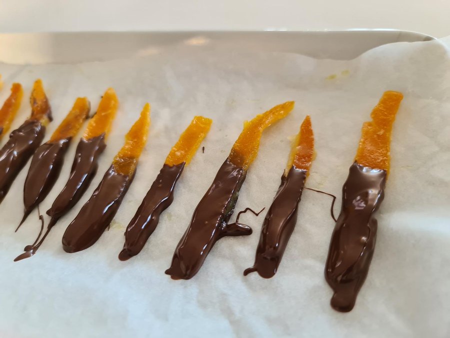 5.- Palitos de naranja cristalizados y cubiertos de chocolate, una delicia para acompañar el café o para darnos un pequeño capricho a cualquier hora del día.