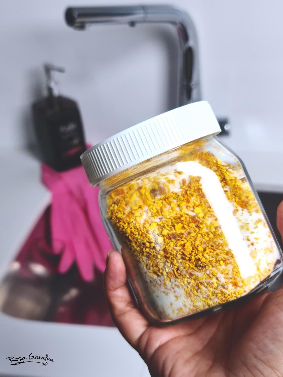 3.- Bicarbonato de sodio con naranja ideal para usar en la limpieza. Úsalo de la misma manera que usas el bicarbonato de sodio común.