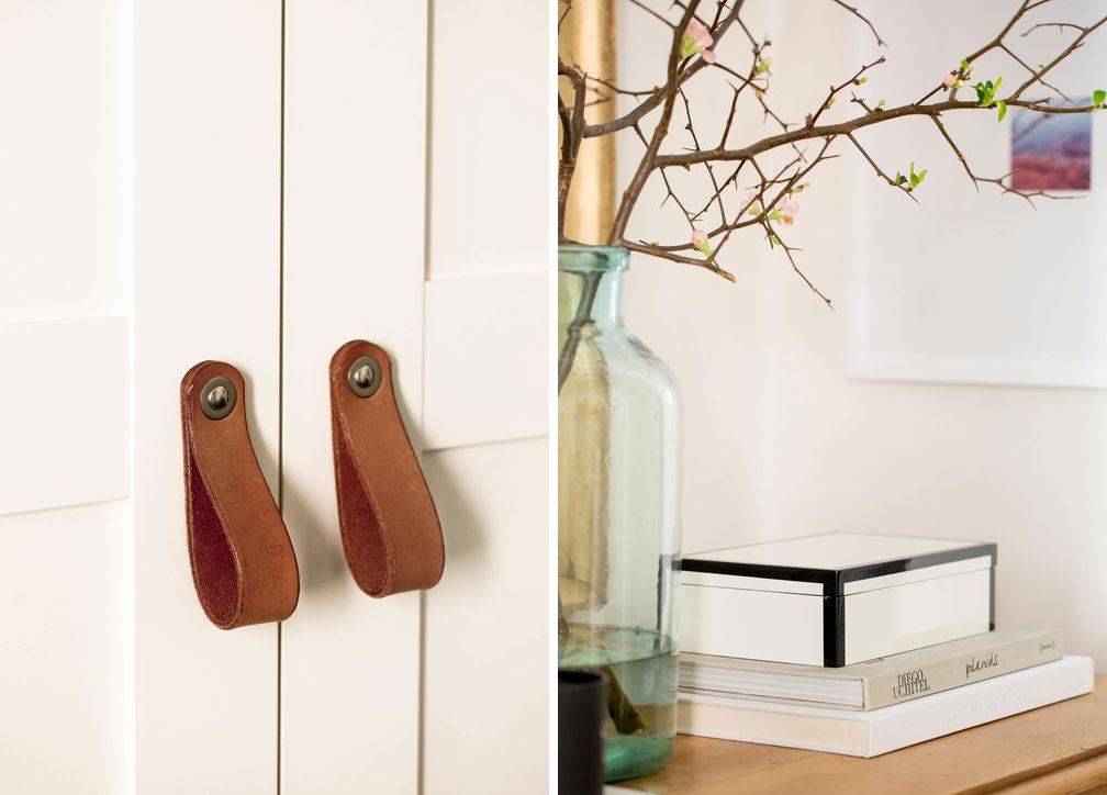 En este proyecto en concreto, cada pieza debía tener un sentido para almacenar. Bajo la cama por ejemplo, hay una colección de cajas con ruedas destinadas a guardar ropa de otras temporadas; todas las mesas incluido el tocador disponen de al menos un cajón y el armario es el conocido PAX de Ikea, personalizado con tiradores de cuero.
