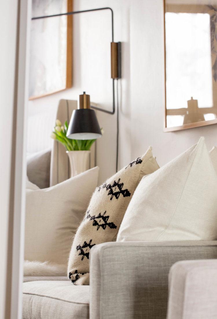Al ser un apartamento de alquiler, lo primero que hizo Meagan Camp fue dar una buena capa de pintura blanca a las paredes, el efecto inmediato que se consigue (además de la luz) es la sensación de limpieza. Con su lienzo en blanco preparado ya estaba todo listo para llenar el espacio con el estilo decorativo que buscaba su clienta.