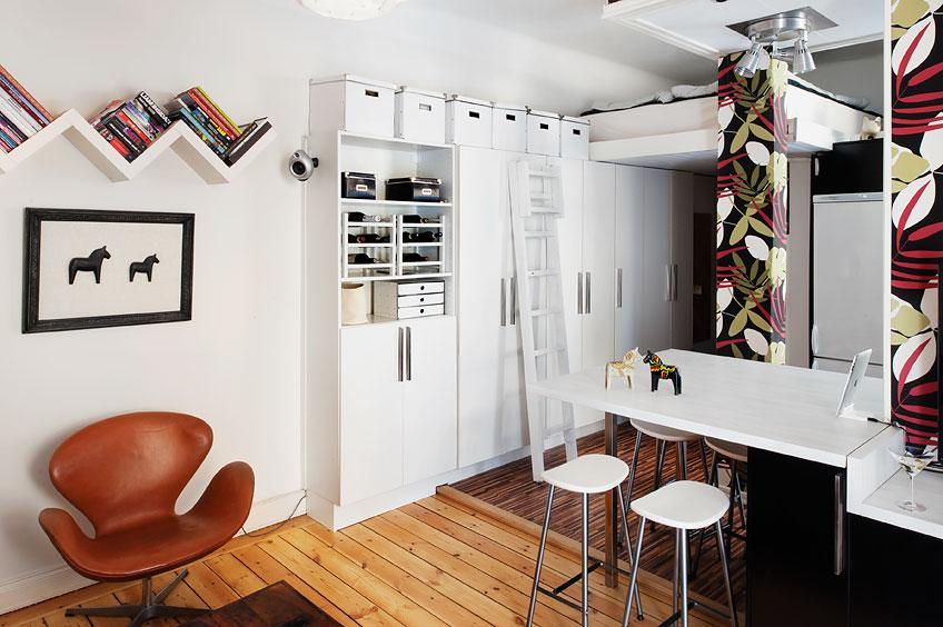 La vivienda protagonista del post es un claro ejemplo de cómo aprovechar al máximo el espacio. Este apartamento de tan sólo 29 m2 está situado en Estocolmo y se divide en varias zonas, un espacio diáfano en el que sala de estar y dormitorio comparten ubicación (aunque quizás se eche en falta un poco de intimidad en el dormitorio), el baño que por supuesto está a parte y la cocina que comparte espa ...