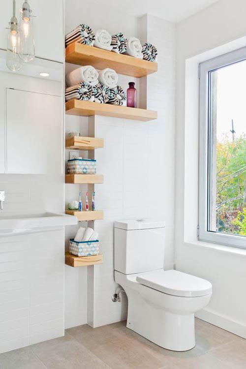 Estanterías a medida aprovechando los espacios es muy buena opción para la reforma de los baños que, además, no suponen mucha inversión.