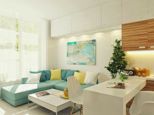 Hola a todos! Hoy os traigo un minipiso de 29 m2 que he encontrado en la página home-designing y que me ha encantado. La planta no puede ser más sencilla ya que se trata de un rectángulo perfectamente distribuido para conseguir que en tan pocos metros pueda caber todo. En este caso dormitorio y salón son todo uno. Me ha gustado mucho la combinación de colores, el azul turquesa del sofá-cama, el su ...