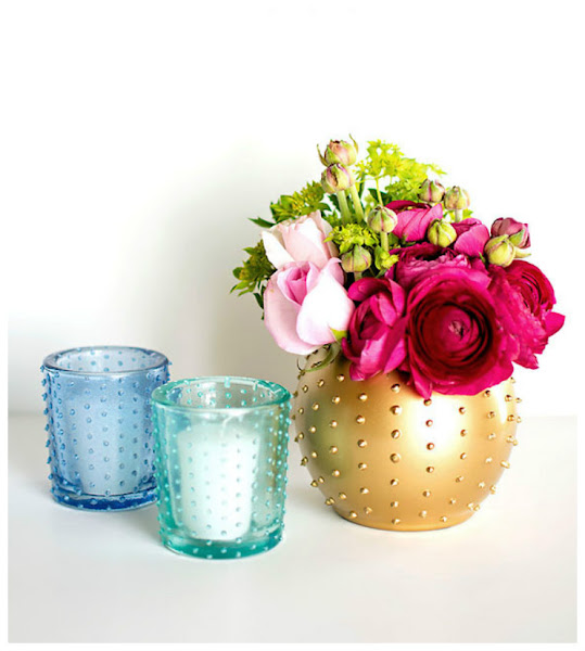 Una buena idea es hacer un portavelas a partir de un vaso o un florero a partir de un tarro redondo de cristal, puedes decorarlo como más te gusté, y el éxito esta asegurado. Puedes ver el tutorial aquí.