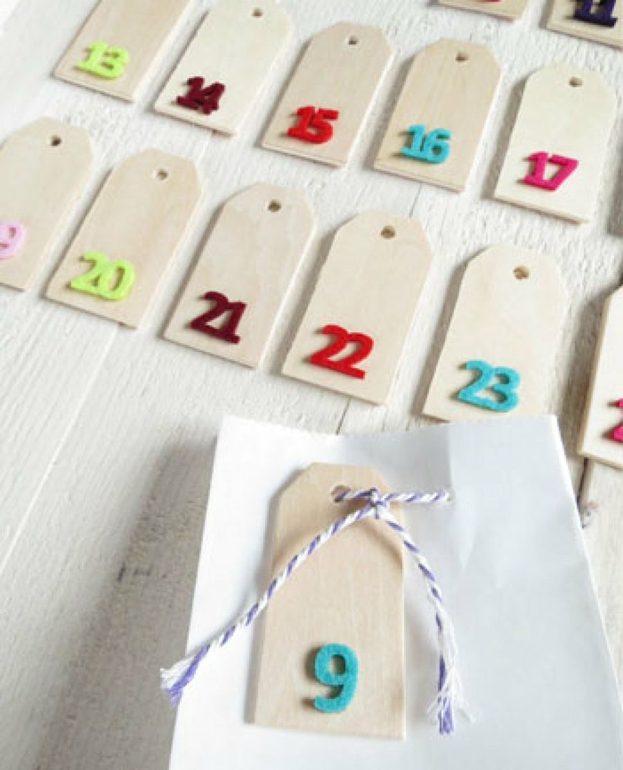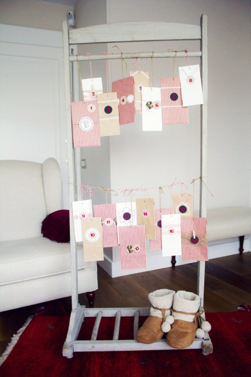 Hace unos días hablamos en el foro de este calendario de adviento hecho en el blog de Holamama. Sólo necesitamos bolsas de papel blancas, unas pinzas y etiquetas para poner los números de la cuenta atrás.