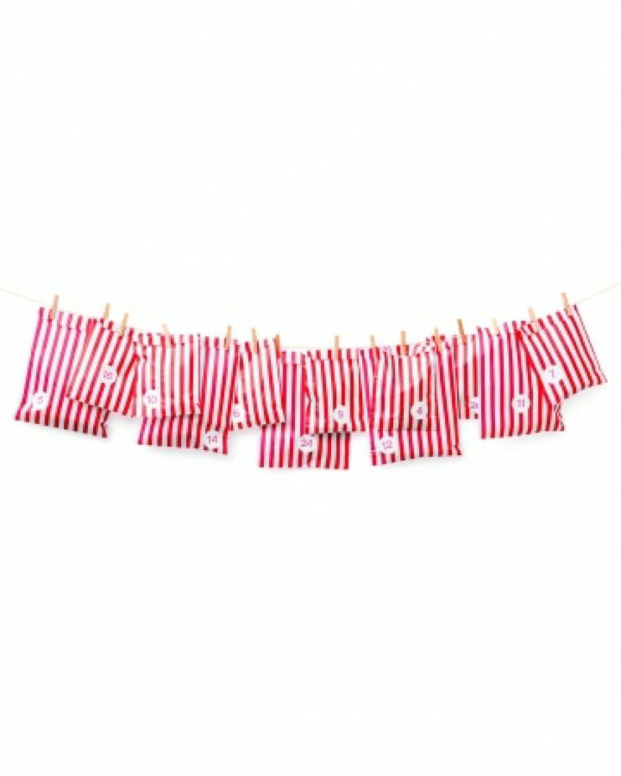 Por último, continuando en la línea del calendario anterior vemos como decorarlas de otra manera. En este caso se han usado bolsas con dibujos y una simple cuerda para atarlas todas. Cómo veis tener un calendario de adviento único y con nuestro sello personal es realmente sencillo.