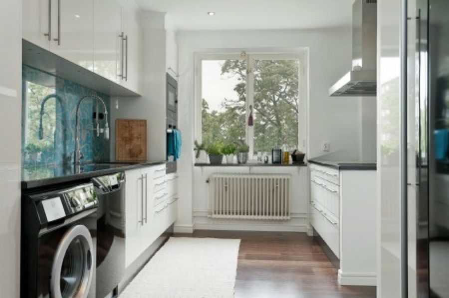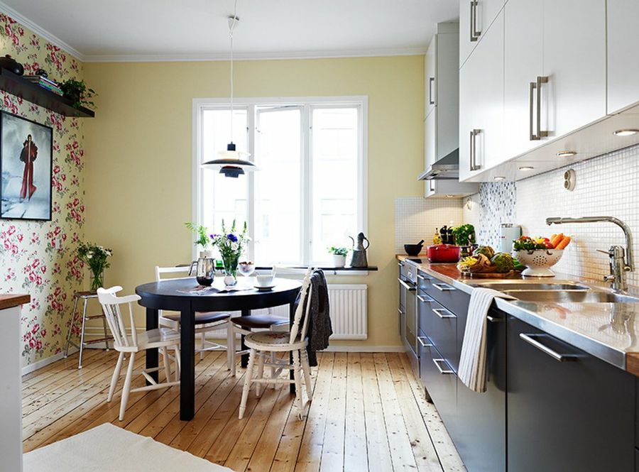 En España es algo muy raro, pero en las cocinas nórdicas la madera se suele usar para el suelo. De esta forma le dan calidez a un mobiliario que suele ser blanco en exclusiva.