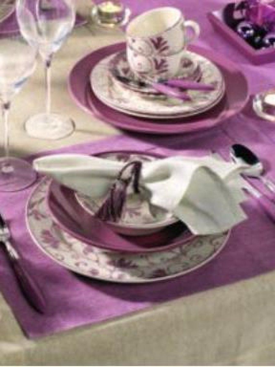El color de moda estas navidades también puede ayudarte a decorar tu mesa. Un mantel morado (Casa) con una impecable vajilla blanca combina a la perfección. Estos originales cubiertos en morado y esta curiosa vela, ambas cosas de Casa, completarán tu mesa, dándole el toque moderno que mucha gente joven busca.