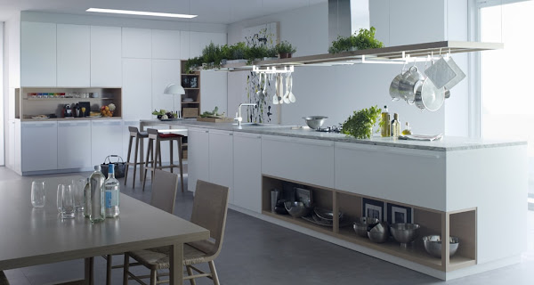Otra idea sencilla para dar un cambio estético a tu cocina es instalar unas baldas o estanterías en las que colocar la vajilla, los botes, las tablas de madera, bandejas.......Esto te aportará un espacio más de almacenaje y añadirán diseño a tu cocina.