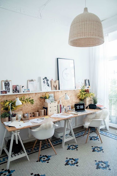 Es todo lo que han necesitado para crear un rincón de trabajo original, y ¡Muy fotogénico! La base, la puedes imitar con unas patas de forja que recicles, o incluso que compres a posta. Y la base, pues ya ves, un tablón viejo, que a saber dónde se usó antes.