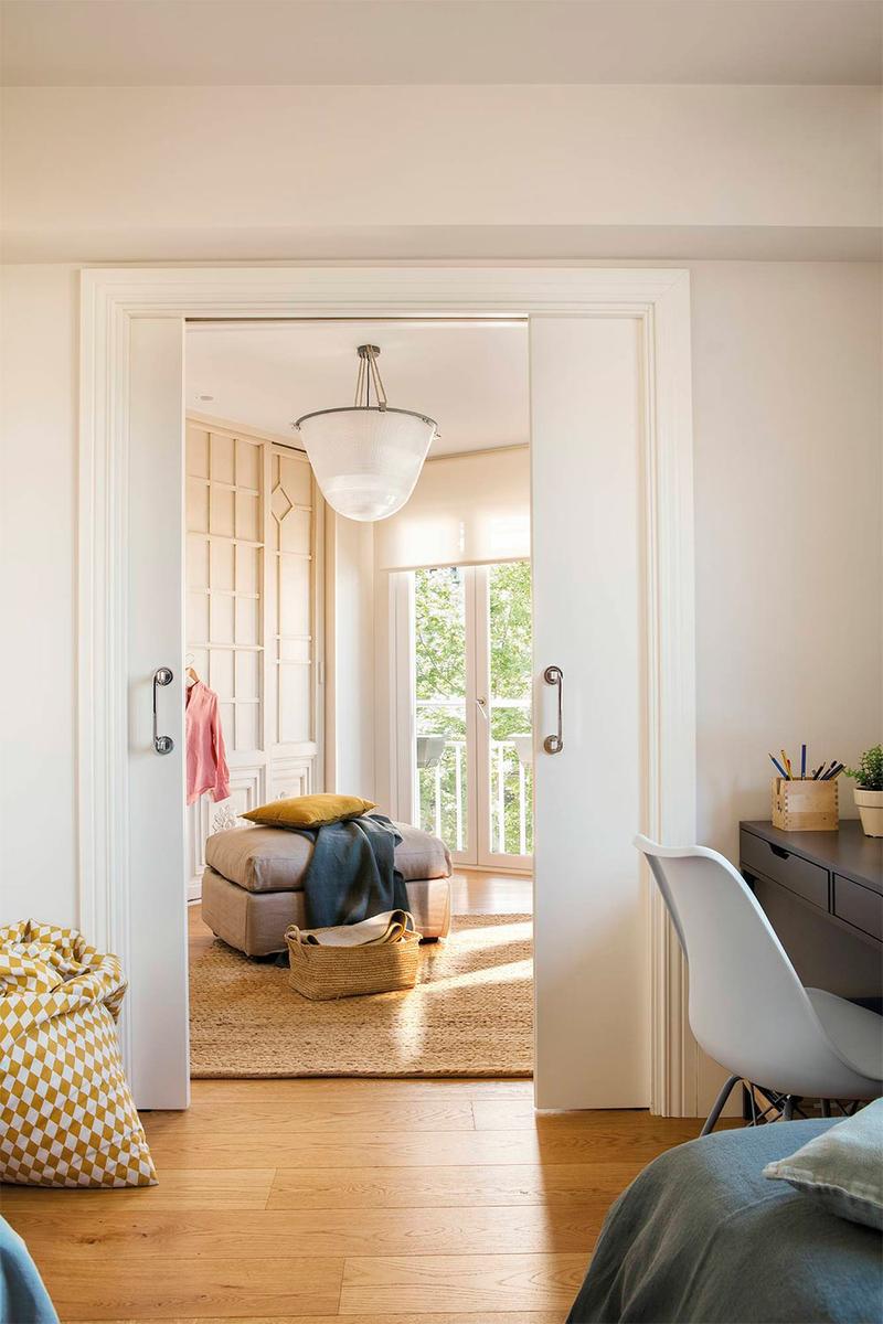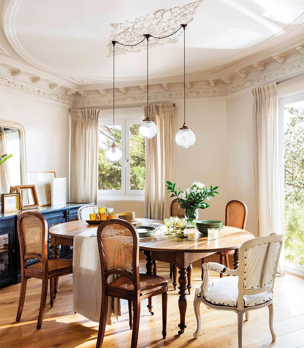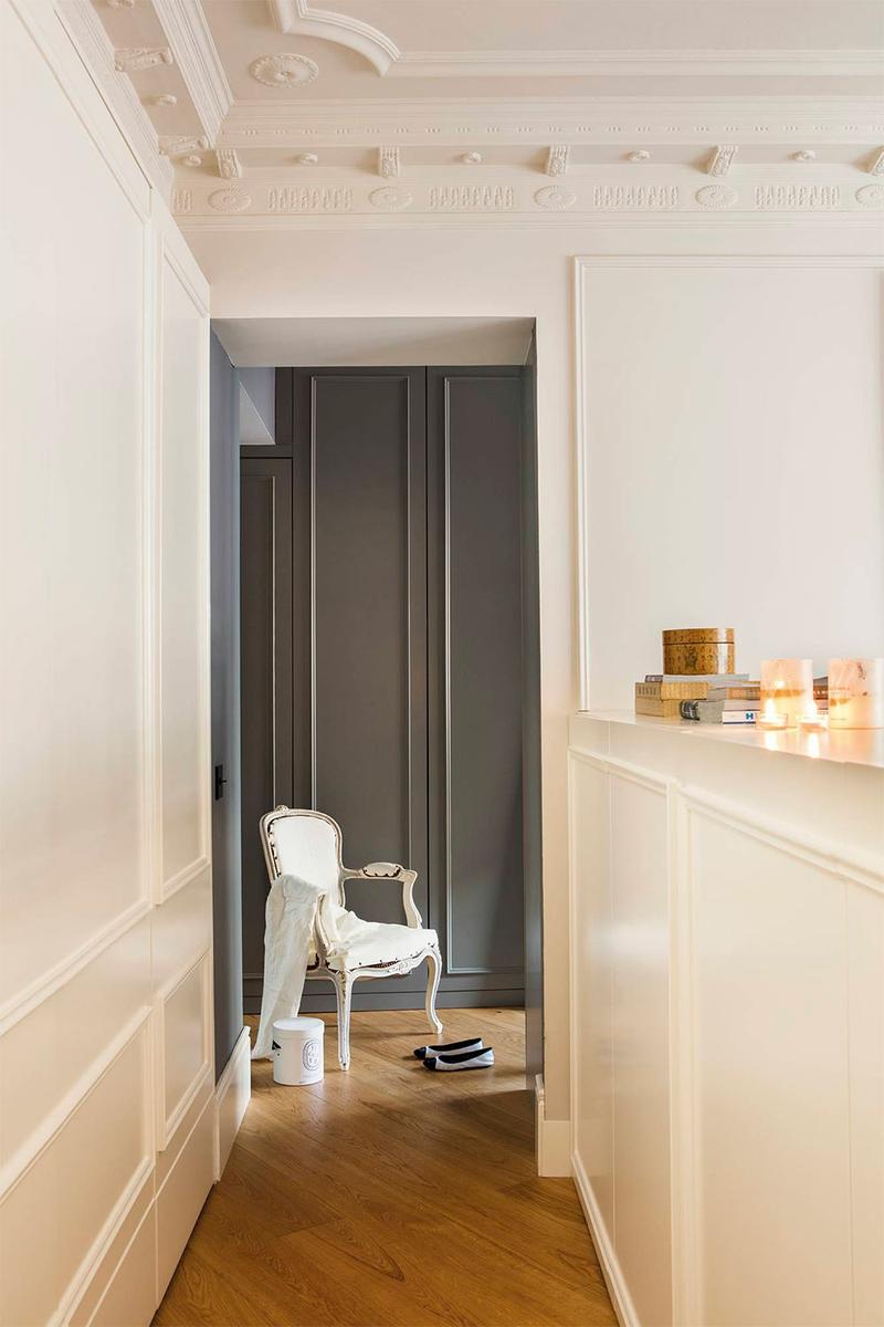 Y para ejemplo de piso repleto de pinceladas en esta tonalidad, el que os traigo hoy. Se trata de una antigua vivienda en Zaragoza, que fue sometida a una reforma integral por la arquitecta Sylvia Preslar. De ella sólo se salvaron las maravillosas molduras originales de los años 50 del comedor y del dormitorio principal, elementos arquitectónicos que le dan gran carácter a la vivienda. Haciendo un inciso, si tenéis una casa nueva o no tan nueva, y sobre todo si tiene los techos altos, podéis acudir a Orac Decor, si os apetece tener molduras en casa. Da igual que busquéis diseños antiguos o modernos, porque su catálogo es infinito (desando estoy de que llegue la edición de este año de Casa Decor para ver con qué nos sorprenden).