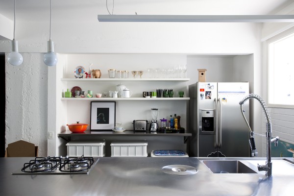 En las paredes de la sala de estar, un mapa de Brasil y fotos de Marcel Gauteroth, Assef Rafael y Felipe Morozini. Muebles de mediados del siglo XX, la mayor parte de ellos comprados en mercadillos del mundo combinan a la perfección con el espacio. El resultado es una vivienda con el encanto de los 50 y llena de buen humor, de cosas simples y coloridas y llena de variedad!