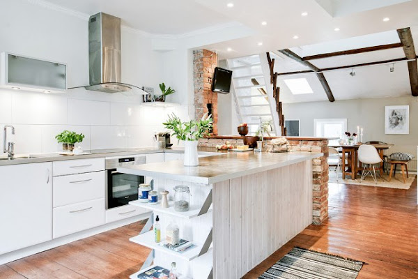 Madera, blanco, ladrillos vistos, unas vigas de madera preciosas.... son muchos los detalles a tener en cuenta en este duplex de 108m² que vamos a visitar hoy y que hace que me plantee la siguiente pregunta ¿cual es el estilo decorativo de este apartamento?.