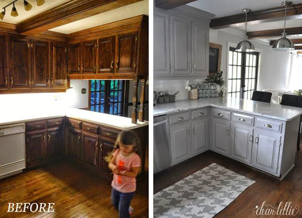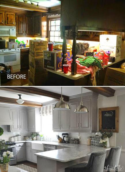 Vaya cambio más espectacular!!! Como veis se han aprovechado casi todos los módulos de la cocina pintándolos de un color gris que ayuda a resaltar las vigas del techo y el suelo de madera que se ha conservado. El frente de la cocina con baldosas blancas tipo metro que, me encantan!!! Vamos...que ha quedado divina, los propietarios tienen que estar encantados con el cambio.