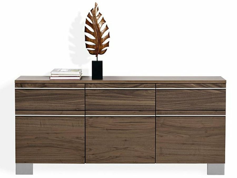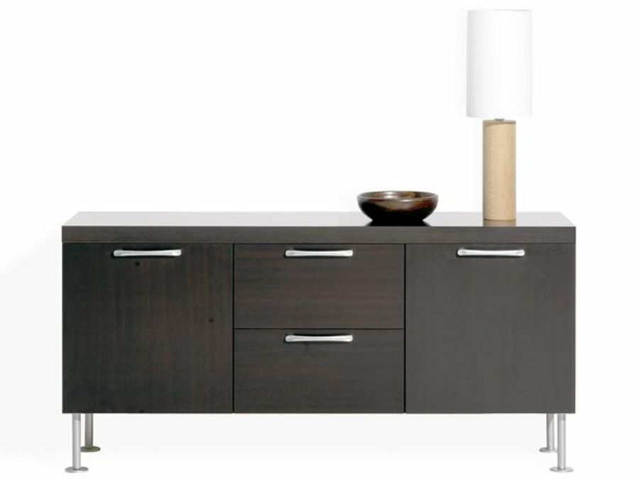 De la misma marca es este ejemplo en nogal llamado Balance, cuyos cajones y puertas, tres de cada uno, están decorados con unas finas líneas de metal que contrastan perfectamente con el color de la madera.