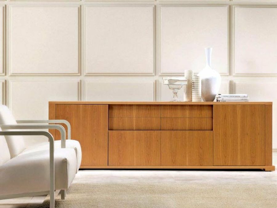 De la marca italiana Porada nos llega una línea de aparadores fabricada en colores originales y con diseños innovadores. Un ejemplo es Bryant Credenza, que está disponible en distintas tonalidades, el de la imagen en color madera.