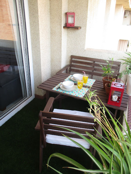 Y ahora vais a poder ver las imágenes de como ha quedado. Pienso que en las fotos se ve bien el cambio pero no del todo al mismo tiempo, porque este cambio es doble, es visual y sensitivo. Primero visual porque de pasar de un suelo viejo y estropeado, de color marrón, a uno nuevo y de un color distinto ya es algo importante, y segundo porque lo que cambian también son las sensaciones. Ahora la terraza parece mas "natural", tiene un rollo jardín muy bonito. Además transmite mucha tranquilidad y frescor, cosa muy importante porque con esto llama a pasar mas tiempo en ella.