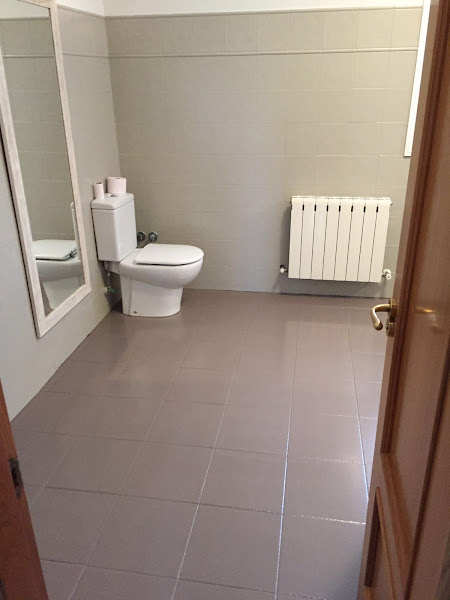 Los azulejos aquí ya se ven acabados. El lacado de los azulejos de la pared es un color arena y el de el suelo es color visón.