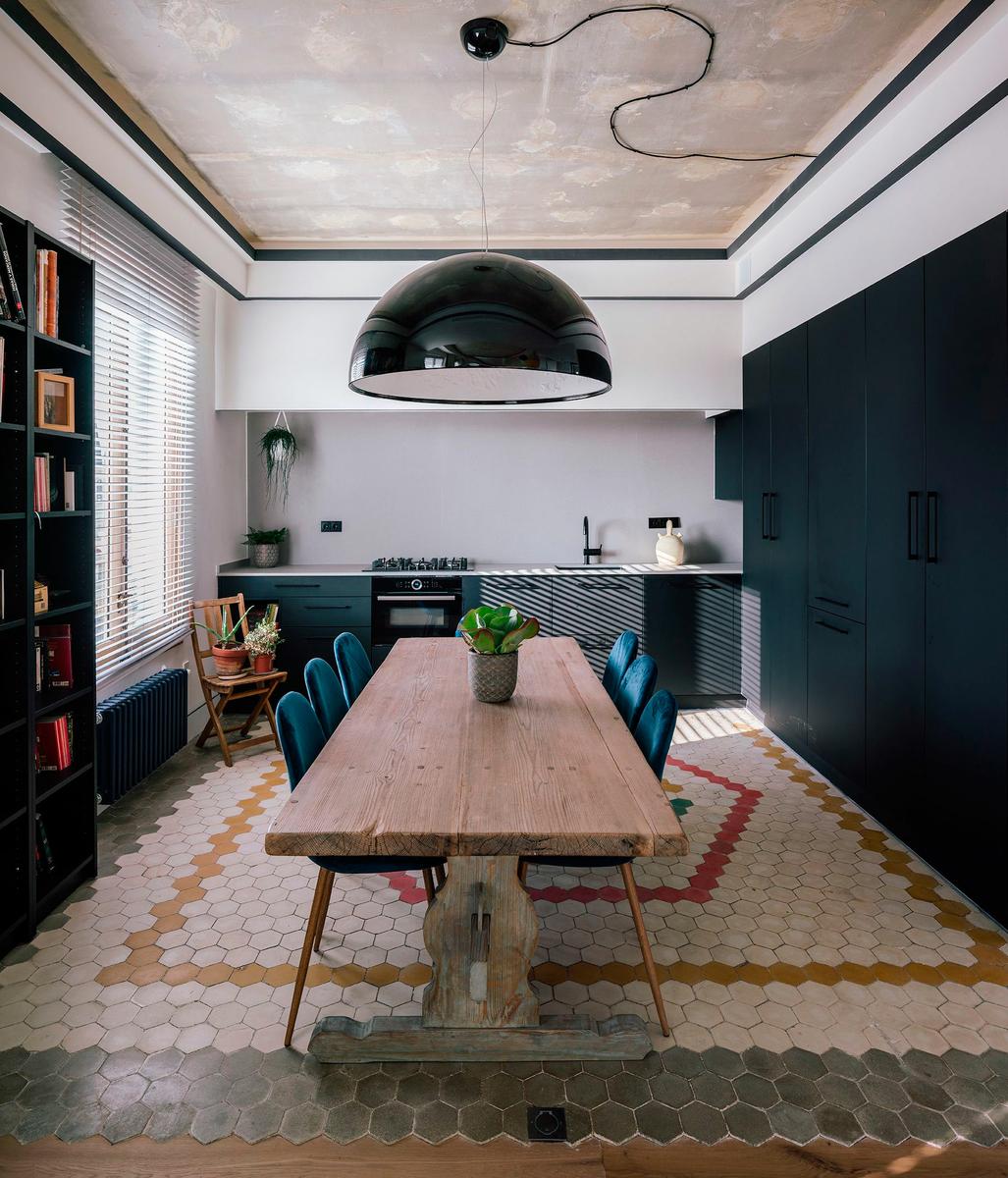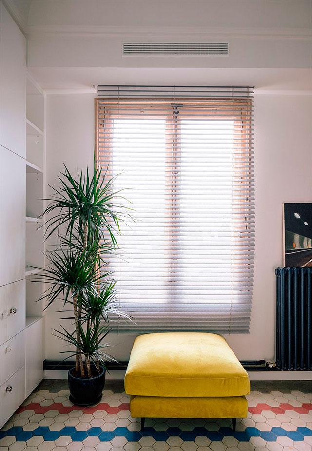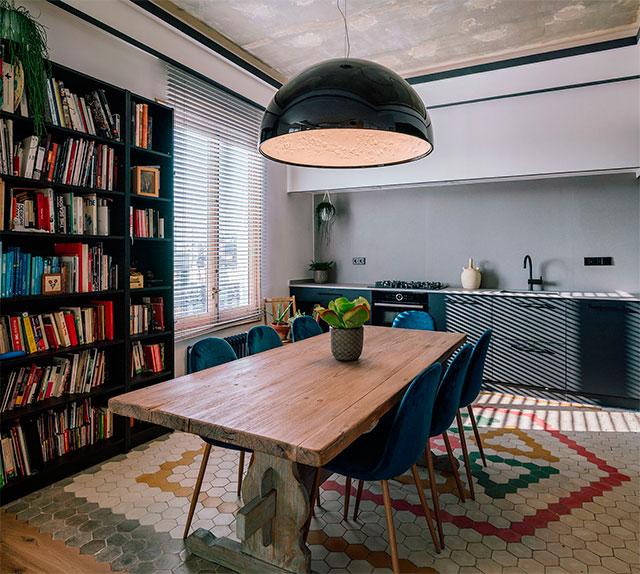 El proyecto de rehabilitación de esta vivienda de los años 50, fue ejecutado por la arquitecta e interiorista Idoia Otegui. Se buscó respetar el carácter antiguo del edifico, así como ciertos elementos estéticos que ya estaban en él, como las molduras, el suelo hidráulico original, las carpinterías,… pero a su vez había que dotarle de espacios contemporáneos adaptados a las necesidades de su cliente (la práctica del yoga, la cocina, la pintura, el trabajo y su pasión por invitar a sus amigos).