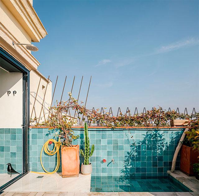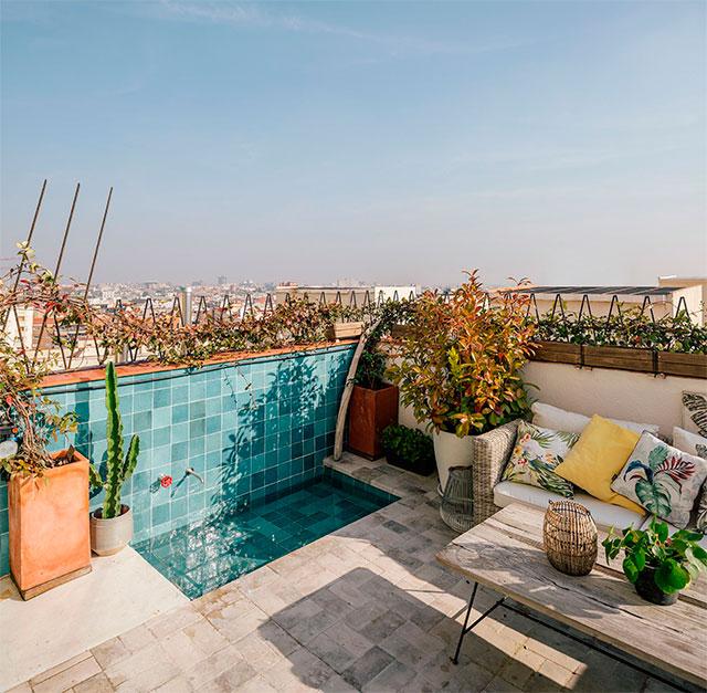 Así de primeras, ¿Seríais capaces de asociarlo a una casa con ducha exterior y otra interior con vistas a la sierra? ¿O a dormir bajo una cúpula? ¿Y a bañaros en una piscina, o más bien alberca diría yo por su tamaño, de agua caliente? ¿Y a hacer escalada por una temeraria escalera no apta para unas prisas? Sin duda resumir esta casa como un ático en Chamberí es quedarse corto, cuando veáis las imágenes lo entenderéis.