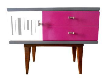Bajo el concepto Chirurgia, aplican su particular forma de hacer cirugía a muebles antiguos, adoptando un diseño personalizado, a través de pintura y estampados en serigrafías. Los motivos geométricos que han ideado se han convertido en su seña de identidad y no paran de recibir menciones en revistas de moda y decoración. Todas sus creaciones son bautizadas, reciben su nombre, y según reconocen ellas mismas, les cuesta desprenderse de tan preciados objetos al final del proceso. Y no es para menos puesto que son fantásticos. Desde aquí felicitaros por vuestra iniciativa y sobretodo por la entrega e ilusión que ponéis en ello. Bajo mi punto de vista, eso es lo más importante.