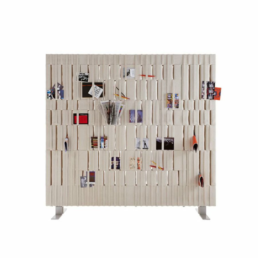 En los tiempos que corren, ya no somos capaces de conformarnos con un mueble que sólo obedezca a una función. Es el caso de Softwall, de B&B Italia, un biombo de una sola mampara que no sólo significa una transición entre dos ambientes, sino que incluye apartados en los que colocar infinidad de objetos: libros, revistas, fotos… Una idea realmente ingeniosa.