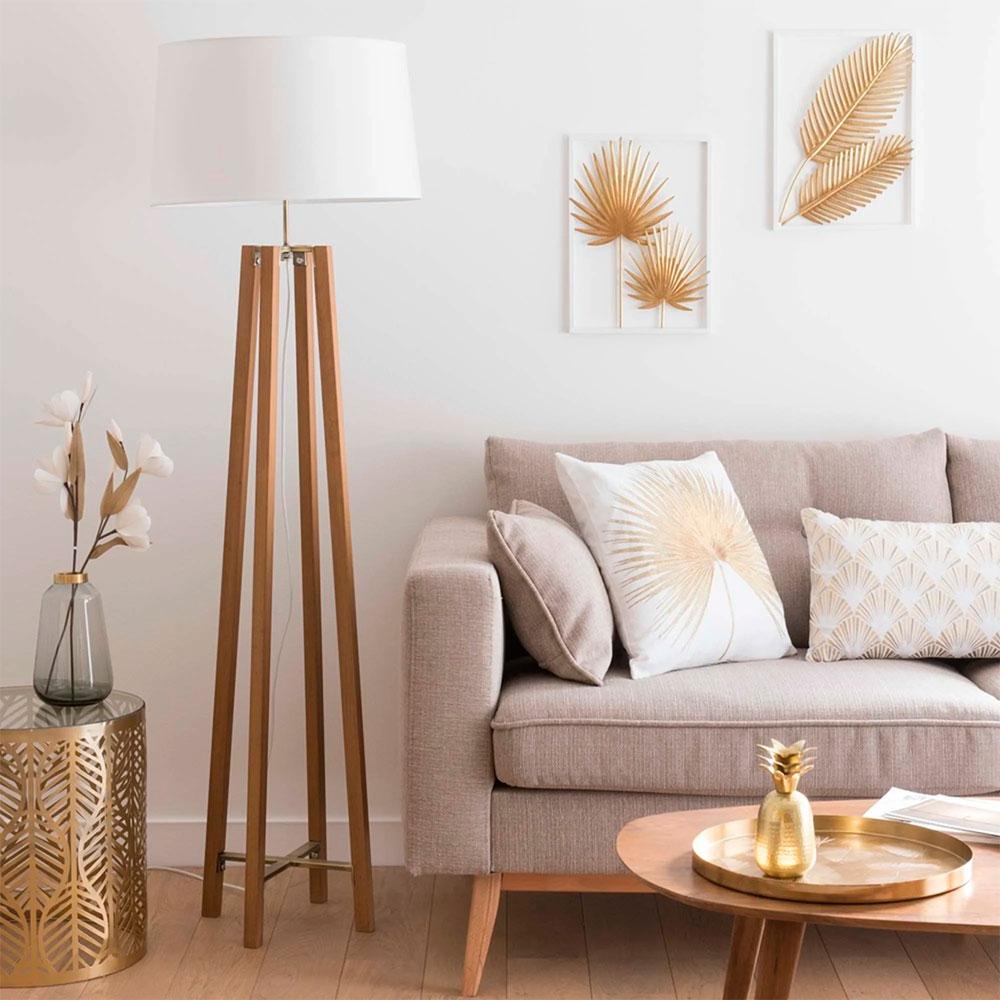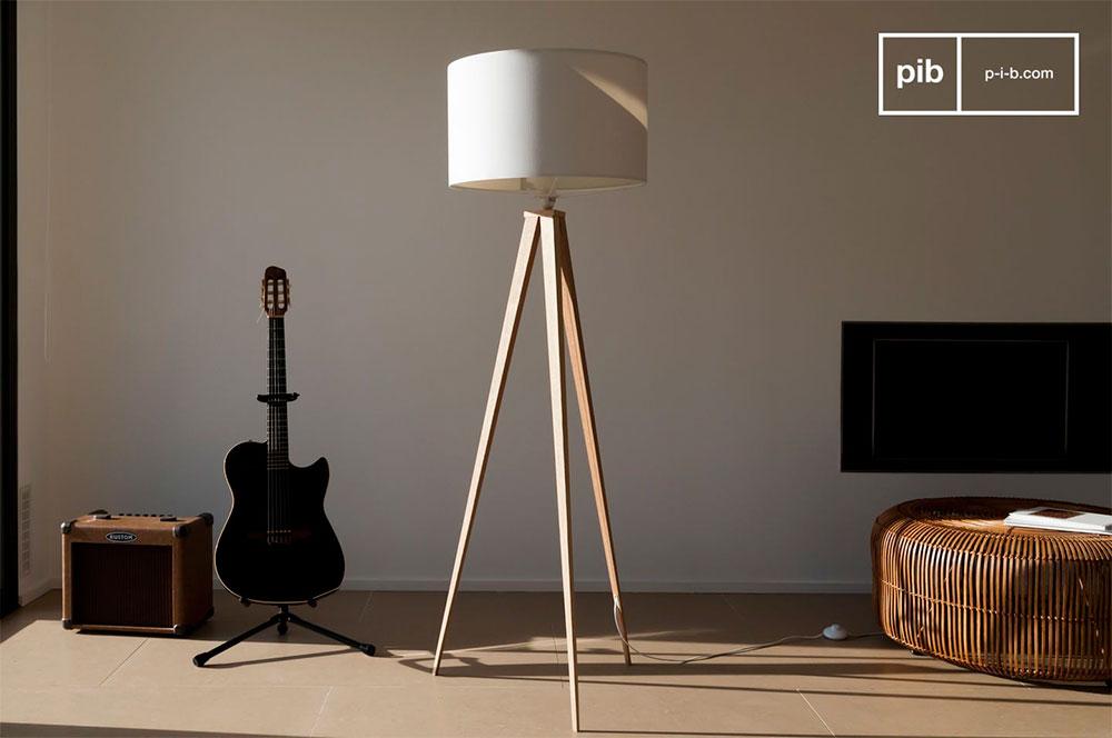 Maison du Monde – SHEFFIELD Lámpara con trípode de roble y pantalla blanca Alt.160