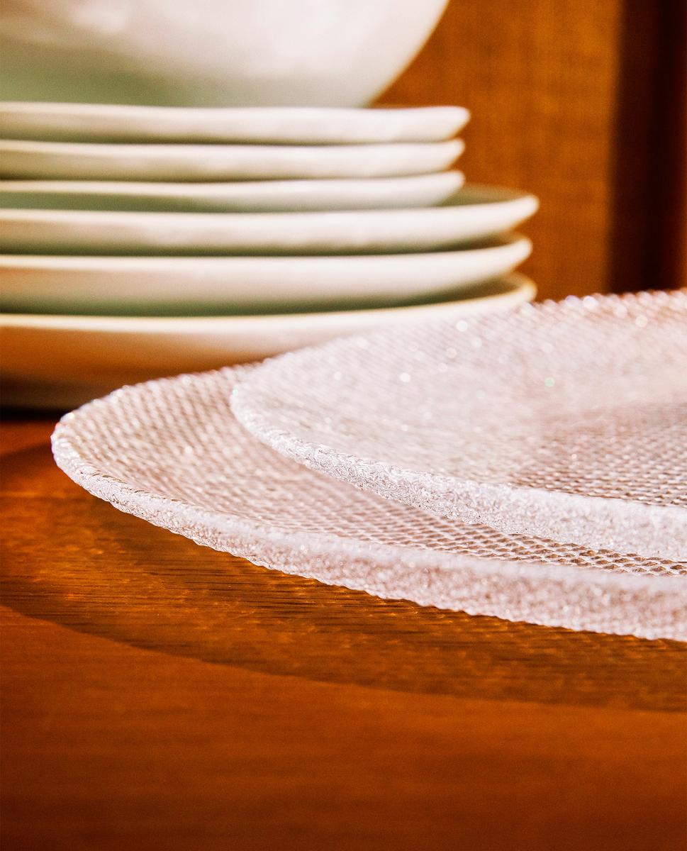 Con todo lo protocolaria que soy poniendo la mesa, no tengo bajo platos y la vajilla de La Cartuja heredada de mi abuela no merece menos. Estos al ser de cristal con relieve, pegan también con cualquier otro diseño, así que son ideales para casa (además todo sea dicho, quedan perfectos acompañando a mis platos de pan de cristal de Bohemia :-))