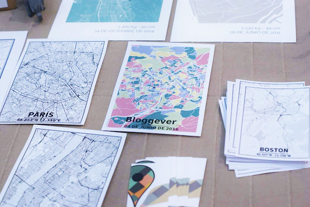 El día B (de bloggever, no de boda), nos levantamos, preparamos, y en marcha hacia Oviedo. Recogimos las acreditaciones, una bolsa llena de souvenirs cuquis, y venga, a pasar los nervios de la desvirtualización. Lo primero que vimos (por encima, claro) y que estaba puesto con un gusto exquisito, fue el market. Y claro, mi puesto favorito (y "tenderos" favoritos) fueron Ana y Julio de Tus Mapas. Después de una rueda de reconocimiento rápida por los puestos, a dar vueltas por el palacio de congresos de Oviedo (del cual no tenemos ni una foto por fuera, con lo chulo que era, por cierto).