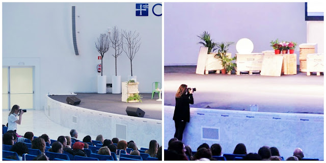 Llegas allí, y claro, uno de los inconvenientes de no dar la cara en RRSS es que no te conoce ni cristo. Ahí vas por la vida, como si fueses invisible, y muriéndote de la vergüenza porque tu presentación es: "Hola soy Moli, de Oli&Moli" y deseando que nadie te mire raro pensando: ¿¡¿¡¿Quién?!?!?! Y otro de los inconvenientes de juntarte con lo más de lo más de instagram, es que ellas son fotógrafas del evento, y tu te tienes que buscar la vida, para no parecer una antisocial. Pero eso se solucionó "fácil": mensaje a @silviaper81 , y ahí acudió al rescate, con su peto verde (del que por cierto, me enamoré). ¡Y menos mal! Porque aunque había mucha gente conocida, yo soy muy despistada, y lo mismo confundo nombres de instagram, o me equivoco de persona (que ya me pasó, en colaboración con @camparinagreen, y con inmortalización del momentazo de @mejorconcafe, que ya os contaré...). A las que si que reconocí y saludé fue a @lsmblog y a @susana_torralbo, que por cierto, estaba hecha un manojo de nervios, porque era una de las ponentes. ¡Si es que nos rodeamos de gente con clase! Y a @momentotriscino , que menos mal que nos presentó Bea, que si no, una al lado de la otra y sin enterarnos...