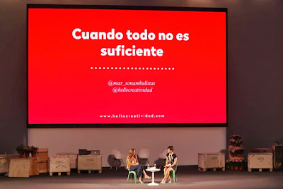 12:15h Cuando todo no es suficiente: emprender. Mar Ramos entrevistada por Azucena Vence. Mar Ramos, mejor conocida como @mar_sonambulistas o por ser una de las creadoras de Hello!Creatividad, nos contó su historia como emprendedora. Y sobre todo, nos contó la importancia de los fracasos. Y si, dice que ella ha fracasado en su vida, y que no le da vergüenza decirlo. Que los fracasos son el mejor máster que nos da la vida. Inició un negocio de bolsos étnicos junto a su marido, y no fue nada bien. Le concedieron una ayuda económica importante para poner en marcha su negocio, y la tuvo que rechazar antes de hipotecarse hasta las cejas.