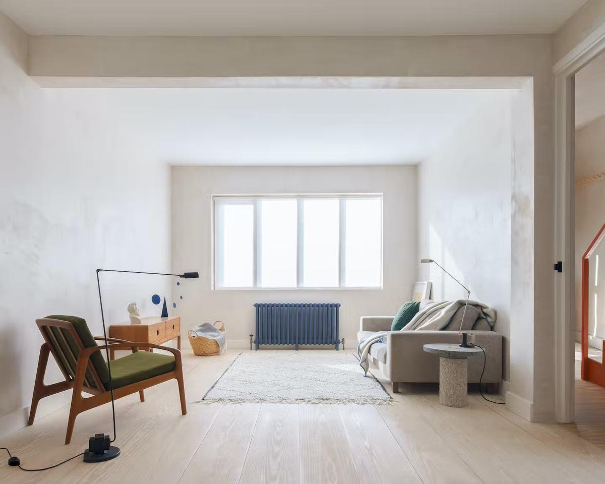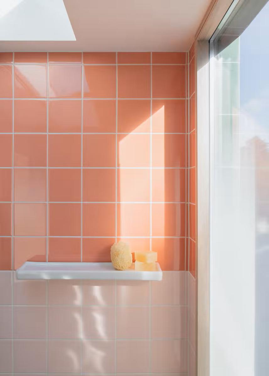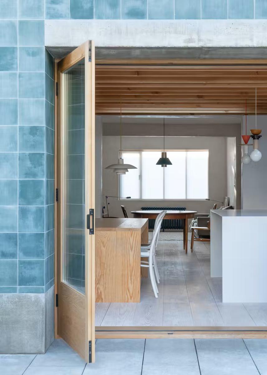 Nada más ver la fachada, ya sabréis qué es lo que ha llamado mi atención de esta casa, ese frente de azulejo azul que nada hace pensar que nos encontramos en Londres. El arquitecto Grant Straghan del estudio Dedraft, se inspiró en las obras del artista londinense David Hockney, para la rehabilitación de esta casa de 1930, utilizando tonos relajantes como los que aparecen en sus obras, de ahí el azul o los rosas de los azulejos.
