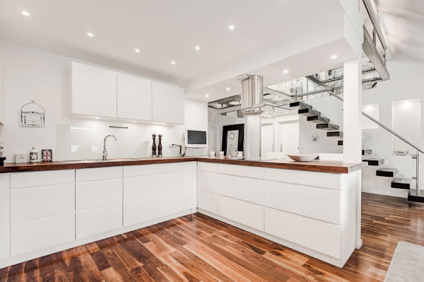 La iluminación de esta casa me parece super acertada, el suelo de madera igual, el color de las paredes... Si es que no puedo decir nada malo de ella!